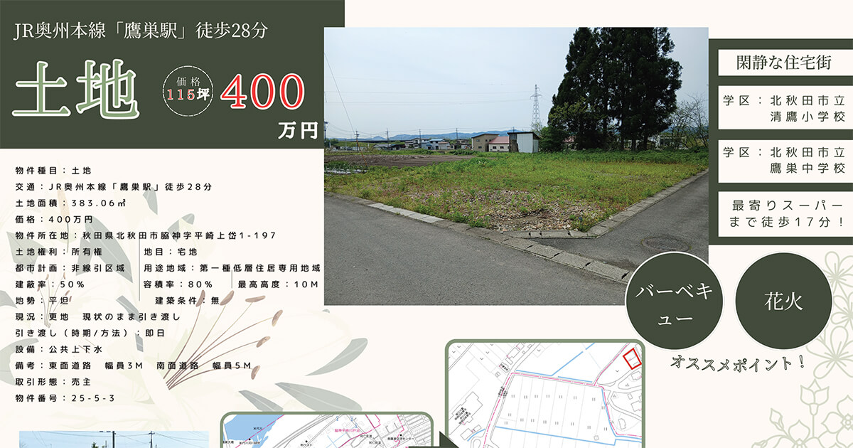 【売地情報】秋田県北秋田市脇神字平崎上岱